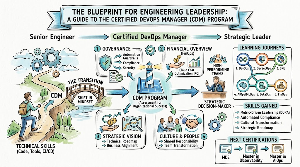 The Certified DevOps Manager (CDM) program was created to address this specific need, providing a clear path for those ready to step away from the keyboard and into the role of a strategic decision-maker.