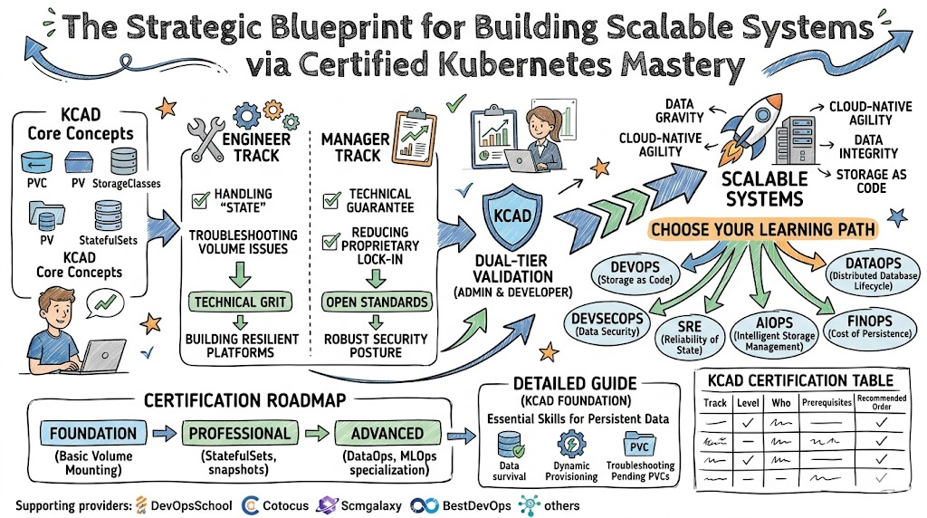 KCAD is often designed as a holistic program that bridges the specific administrative (CKA) and development (CKAD) competencies into a unified path.