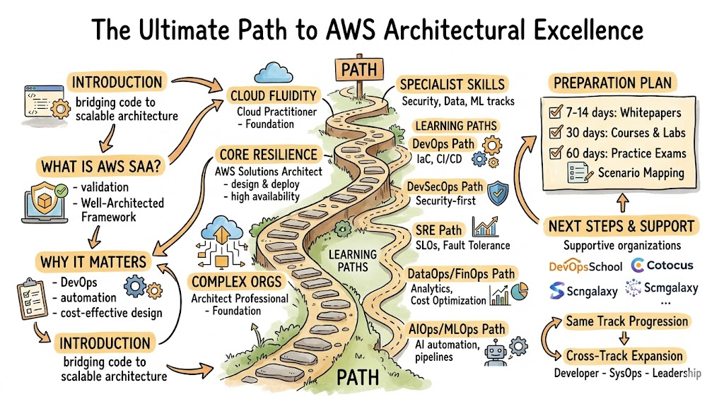 The AWS Certified Solutions Architect – Associate serves as the gold standard for professionals aiming to design and deploy robust, scalable systems on Amazon Web Services. This guide is crafted for software engineers, Site Reliability Engineer professionals, and technical leaders who need to move beyond basic cloud usage into architectural excellence. In a market where cloud-native transformation is the norm, understanding the pillars of the Well-Architected Framework is essential for making informed infrastructure decisions. This comprehensive roadmap will help you navigate the certification landscape, ensuring you choose the right path to elevate your career and deliver high-availability solutions for global enterprises.